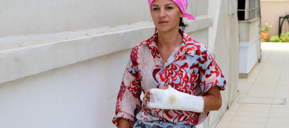 Komşuların durumu sağlık ekibine haber verdiğini belirten Iryna Melnychuk D., "O halde ben KADES'e bastım, komşularım da ambulansı çağırdı. Ambulans beni Antalya Eğitim ve Araştırma Hastanesine kaldırdı. 21 Temmuz'a kadar hastanede kalıp tedavi gördüm. Ameliyat yapıldı, dikişler ve zımbalar var. Pazartesi kafamdaki yaralardan dolayı ameliyat olacağım. Kapanması zor yaralar var" diye konuştu.