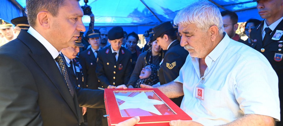 Vali Hulusi Şahin Şehit Babası İsmail Şen'e "Oğlumuz Mustafa, vatanımızın, milletimizin, Türkiye Cumhuriyetimizin, bağımsızlığımızın ve tevhidin sembolü. Bu kutsal bayrağımızın dalgalanması için canını feda etti. Bu kutsal bayrağı ben de öperek size emanet ediyorum. Başımız sağolsun" diyerek Türk Bayrağı takdim edip şehidimizin ailesine başsağlığı diledi.