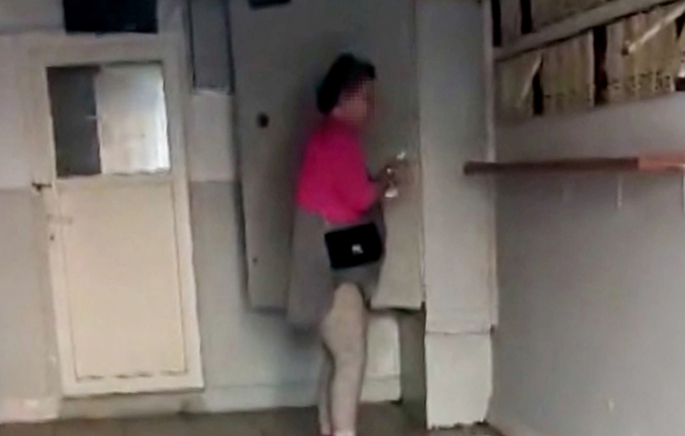T.A.'nın apartmanın içini dağıtması, asansörün camını ve eşyaları kırması, komşuları tarafından cep telefonuyla kaydedildi. Güvenlik kamerasına yansıyan görüntülerde ise kadının merdiven demirlerini sökmeye çalıştığı, işletmelerin camına sopa ile saldırdığı ve işletmedekileri kovaladığı görüldü.