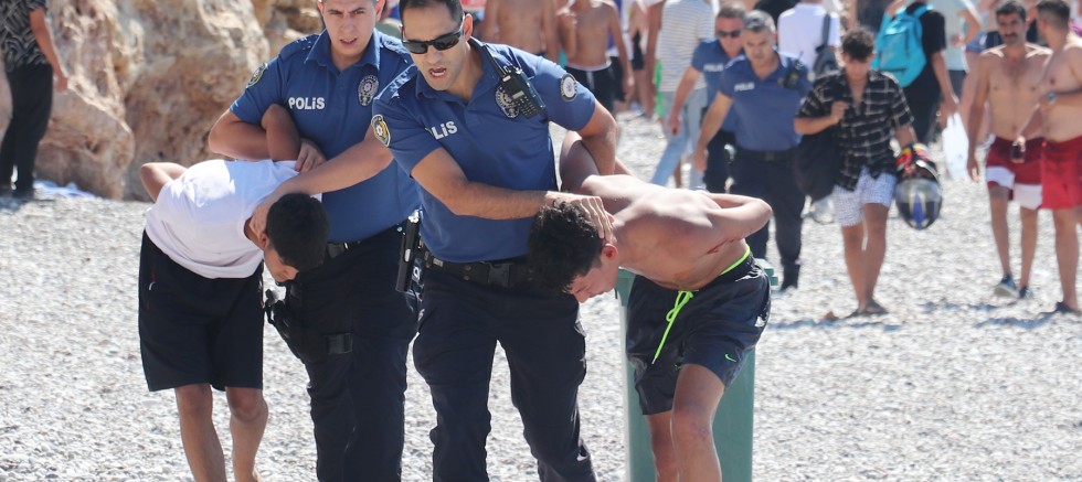 Olay, saat 10.30 sıralarında Muratpaşa ilçesi Konyaaltı Beach Park girişinde meydana geldi. Kimliği öğrenilemeyen bir kişi, denizde yüzdüğü sırada cep telefonunu çaldıkları gerekçesiyle 5 kişiyle tartışmaya başladı. İddiaya göre, telefonu sahibine vermek için 4 bin TL isteyen 5 kişi ile telefon sahibi arasındaki tartışma büyüdü. Durumun 112 Acil Çağrı Merkezi'ne bildirilmesi üzerine olay yerine sivil polis ekipleri yönlendirildi. Gelen ekipler, şüpheli 5 kişinin kendilerine neşter ve küçük kamp baltasıyla direnmesi üzerine takviye ekip talebinde bulundu. Bunun üzerine bölgeye çok sayıda resmi ve sivil polis ekibi sevk edildi. Polise direnmeyi sürdüren 5 kişi, takviye ekiplerin gelmesiyle biber gazıyla etkisiz hale getirilerek kelepçelendi. Polis, 5 kişinin üzerinden çalındığı iddia edilen cep telefonu çıkmayınca, olayın yaşandığı bölgede ve kayaların arasında bir süre arama yaptı ancak sonuç elde edemedi. Polis, şüphelilerin kullandığı baltaya el koyarken, neşteri ise aramaya rağmen bulamadı.