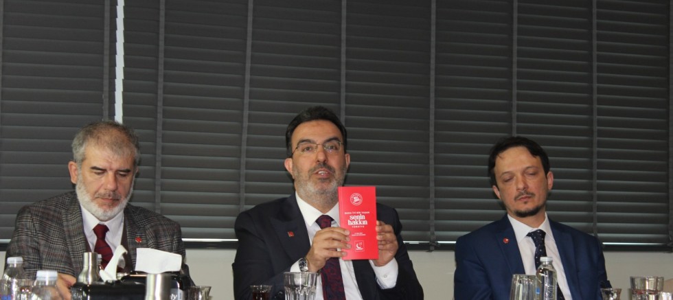 Milli Görüş Belediyeciliğinde, her şeyden önce Hakkı üstün tutmak, insana büyük önem vermek, herkese adil ve eşit davranmak, partizanlık yapmamak, ibadet aşkıyla çalışmak ve çevre ve insanla barışık bir anlayış esastır. Borçla ve kredi ile değil öz kaynaklarla kalkınma, rüşveti, yolsuzluğu, adam kayırmacılığı, partizanlığı ve gereksiz harcamaları önleme, belediye hizmetlerini vatandaşın ayağına götürme, çevreyi ve doğayı koruma, halk meclisleri, şeffaflık, gece gündüz etkin ve aktif belediyecilik temel prensiplerimizdendir. İşte biz Antalya Büyükşehir Belediye Başkanlığı’na bu esaslar ve değerlerle talibiz" şeklinde konuştu.