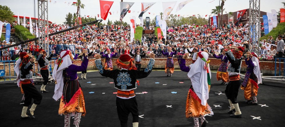 Konuşmanın ardından etkinlikte çocuklar bayramı dans gösterileri, halk oyunları, müziklerle doyasıya kutladı.