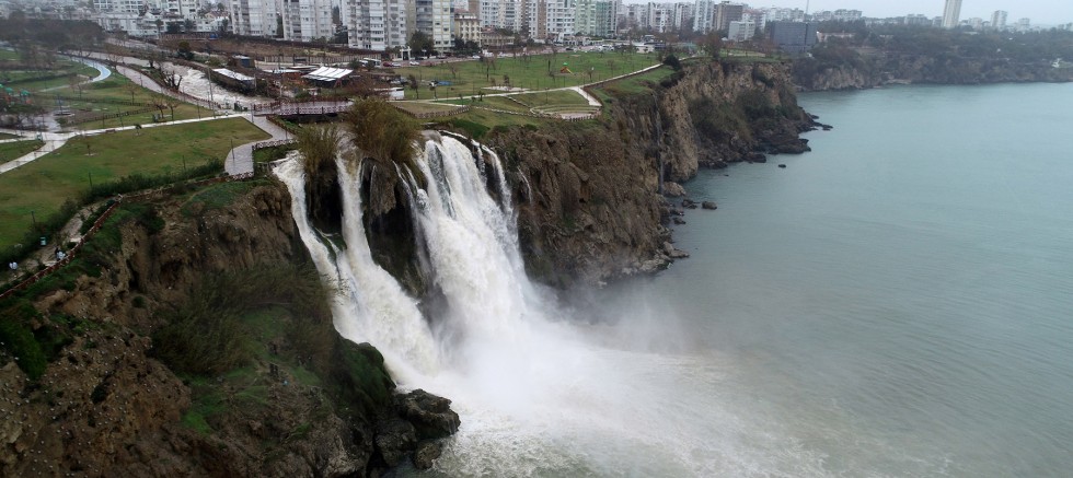 Meteoroloji'nin 'turuncu kod'la uyardığı Antalya'da 2 gündür etkili olan sağanak ve fırtına, hayatı olumsuz etkiliyor. 2 bin 500 ev ve iş yerinde su baskını ihbarı yapılan kentte, etkisi hafifleyen yağış sürüyor. Özellikle Kepez ve Muratpaşa ilçelerinde yaşanan su baskınları sonrası sulama kanallarındaki su seviyesi arttı. Çamura dönen su, Düden Şelalesi'nin 9 koluna doldu. Dünkü yağışlarla debisi artan su, Lara bölgesinde falezlerden dökülen Düden Şelalesi'ni çamura buladı.