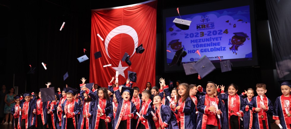 Antalya Büyükşehir Belediyesi, bünyesinde hizmet veren kreş ve gündüz bakımevlerinde eğitim gören çocuklar yılsonu gösterileri ile büyüledi. Programın sonunda kep fırlatma töreni ile mezun olan miniklere diplomaları takdim edildi.