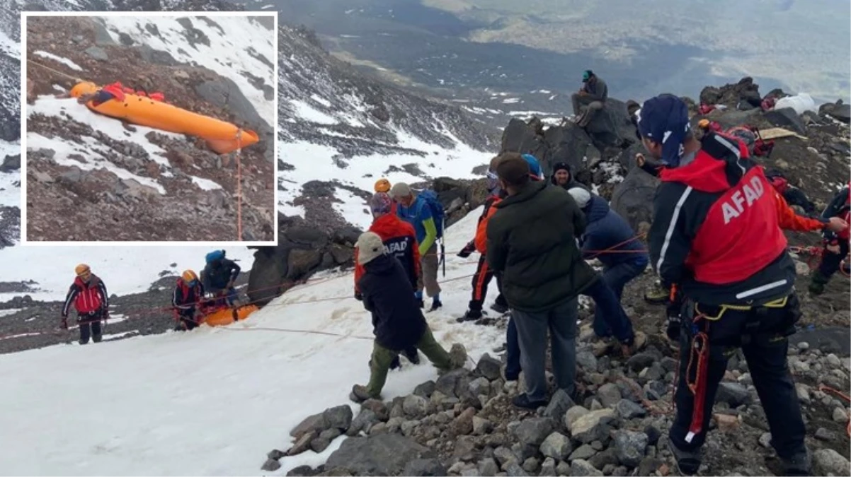Ağrı Dağı'na tırmanış sonrası düşerek hayatını kaybeden İranlı dağcının cenazesi, ekiplerin yardımıyla 5 gün sonra dağdan indirildi. Cenaze otopsi için hastaneye götürüldü.
