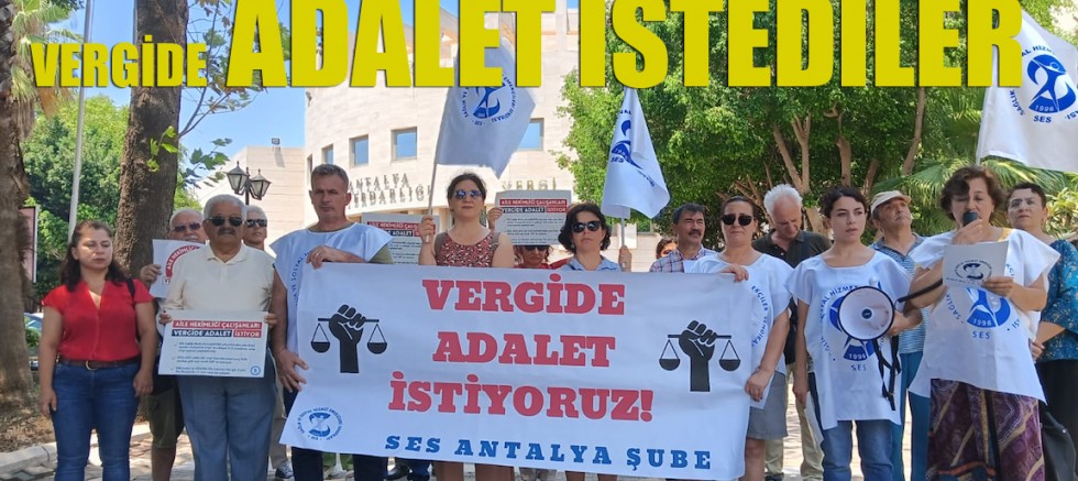 Sağlık ve Sosyal Hizmet Emekçileri (SES) Antalya Şubesi “ Vergide Adalet” eylemlerini sürdürüyor. Vergide Adalet eyleminin bu haftaki adresi Antalya Vergi Dairesi oldu. Antalya Vergi Dairesi önünde toplanan SES Antalya Şubesi üyeleri sloganlarla AKP iktidarının vergi politikalarını protesto etti.