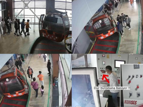 İsmail Saymaz'ın ulaştığı görüntülere göre saatler 17,15'i gösterdiğinde operatör yardımcısı Suphi Kaplan, üst istasyonda halat ve makaraların olduğu alana çıkıyor. Halatı hareket ettiren sistemi kontrol ediyor. Bir olumsuzluk görmediği için aşağıya iniyor.Saat 17.20.11'de vatandaşlar yetkilileri uyarıyor. 17.20.40'da operatör Serkan Yellice, cep telefonuyla konuşarak, alt kontrol odasına giriyor.17.21.21'de vatandaşlar yeniden yetkilileri uyarıyor.
