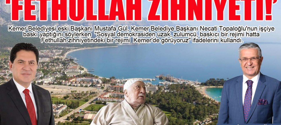 Kemer Belediyesi eski Başkanı Mustafa Gül, Kemer Belediye Başkanı Necati Topaloğlu'nun işçiye baskı yaptığını söylerken "Sosyal demokrasiden uzak, zulumcü, baskıcı bir rejimi hatta Fethullah zihniyetindeki bir rejimi Kemer'de görüyoruz" ifadelerini kullandı.