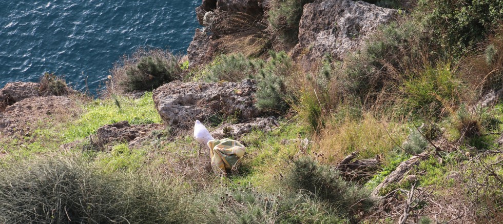 ANTALYA'da 30 metrelik falezlerden bir kişinin düştüğü ihbarıyla olay yerine gelen itfaiye ekibi, düşen nesnenin battaniyeye sarılı yastık olduğunu gördü.