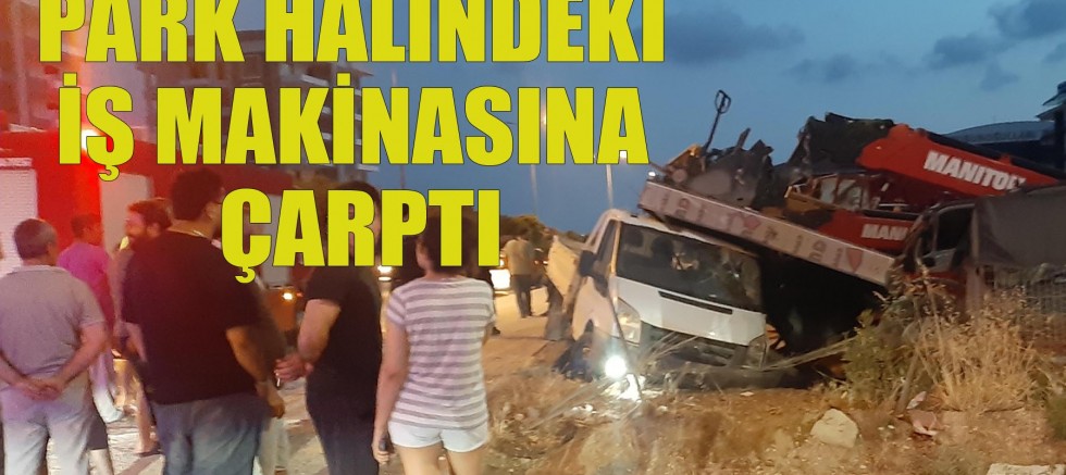 ANTALYA'nın Serik ilçesinde yoldan çıkan kamyonetin park halindeki iş makinesine çarptığı kazayı sürücü hafif sıyrıklarla atlattı.
