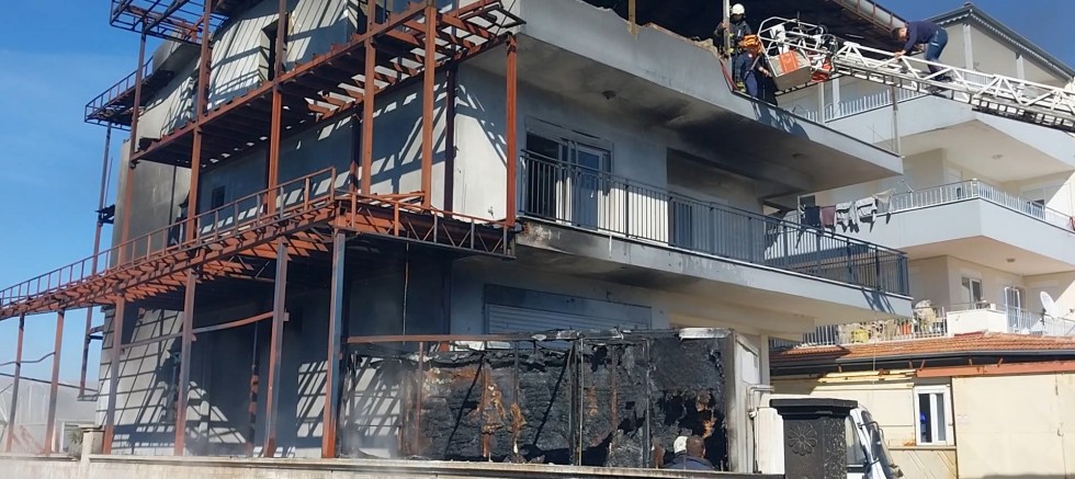 ANTALYA'nın Manavgat ilçesinde 2 katlı boş bina girişinde kaynak yapılırken sıçrayan kıvılcım plastik kasaları tutuşturdu. Kasalardan yayılan alevden meydana gelen yangında bina ve park halindeki kamyonet zarar gördü.