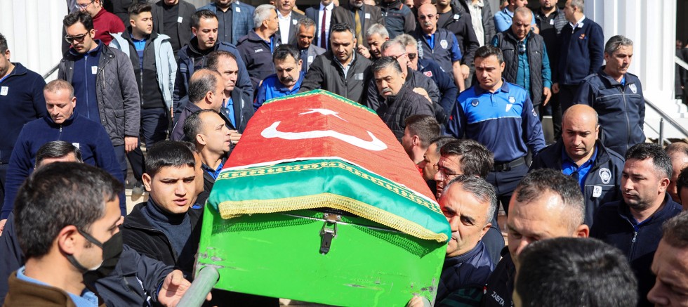 ANTALYA'da meslektaşı Erdal Vuran (36) tarafından öldürülen zabıta memuru İsmail Kanmaz (60) için Muratpaşa Belediyesi önünde tören düzenlendi. Kanmaz'ın çocukları ve yakınları, gözyaşı döktü.