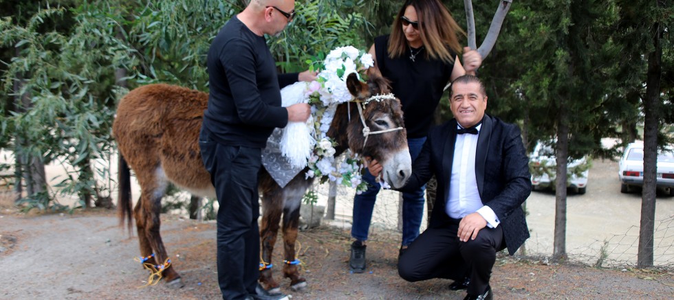 ANTALYA'nın Kumluca ilçesinde, neslinin tükenmesinin önüne geçilmesi ve farkındalık oluşturmak amacıyla eşeklere sembolik nikah kıyıldı. Türk Halk Müziği şarkıcısı Aydın Aydın'ın da türkü söyleyip klip çektiği etkinlikte, eşeklere gelinlik ve damatlık giydirildi.