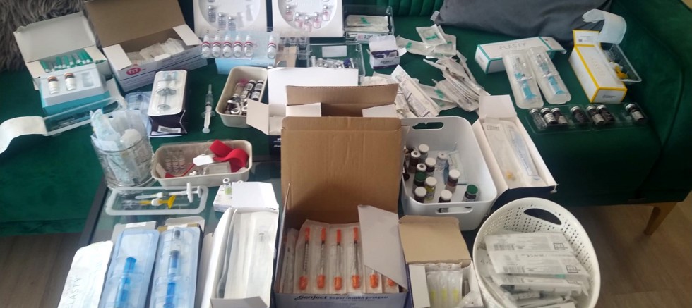 Konyaaltı Kaymakamlığı koordinesinde İlçe Sağlık Müdürlüğü tarafından sosyal medya üzerinden tespit edilen ve hakkında Cumhuriyet Başsavcılığı'na suç duyurusunda bulunulan, insan sağlığını olumsuz etkileyebilecek ve sadece uzman hekimler tarafından yapılabilecek tıbbi işlemleri yetkisiz, kayıt dışı ve izinsiz biçimde uygulayan İran asıllı kişinin kendisini doktor olarak tanıttığı belirlendi. İlçe Sağlık Müdürlüğü ve İlçe Emniyet Müdürlüğü ekipleri, Liman Mahallesi'ndeki muayenehaneye baskın düzenledi. Baskında iş yerinin ruhsatsız olarak işletildiği tespit edildi. Yapılan aramalarda, 10 kullanılmış, 5 açılmış dolgu maddesi, bir kutu içerisinde 2 açılmamış, 1 açılmış iğneyle uygulanan inceltici serum, 2 açılmış bir açılmamış botoks ürünü, 9 açılmamış dolgu çözücü, 6 lokal anestezik ampul, bölgesel uyuşturucu sprey, 8 açılmış ve bir açılmamış gençlik aşısı olarak da bilinen antioksidan madde, 15 açılmış, 5 kapalı saç dökülmesini engelleyici solüsyon, 11 yağ eritici solüsyon flakonu, gözde şişlik ve koyu halka onarımında kullanılan açılmış bir de kapalı ürün, 5 falkon, 3 açık dermapen yüz serumu, 0,5 mililitre kapalı derma roller aparatı, 41 kullanılmamış sarı kapaklı biyokimya kan tüpü, 24 açılmamış içinde sıvı bulunan tanımlanamayan kan tüpü, 16 farklı boylarda damar yolu açmak için kullanılan intraket, bir kutu açılmamış kelebek şekilli intraket, farklı boylarda yarısı kullanılmış 5 kutu şırınga, farklı boylarda bir kısmı kullanılmış 8 kutu iğne ucu, 4 kapalı serum seti, kan almak için kullanılan bir poşet vacutanier ve bir kutu uçları, tüpe alınan kanları ayrıştırmak için kullanılan santrifüj cihazı, 10 mililitre enjektöre çekilmiş ve ne olduğu tespit edilememiş sıvı ele geçirildi. Olaykla ilgili İranlı asıllı kişi ve işletmeyle ilgili adli ve idari işlem başlatıldı. (DHA)