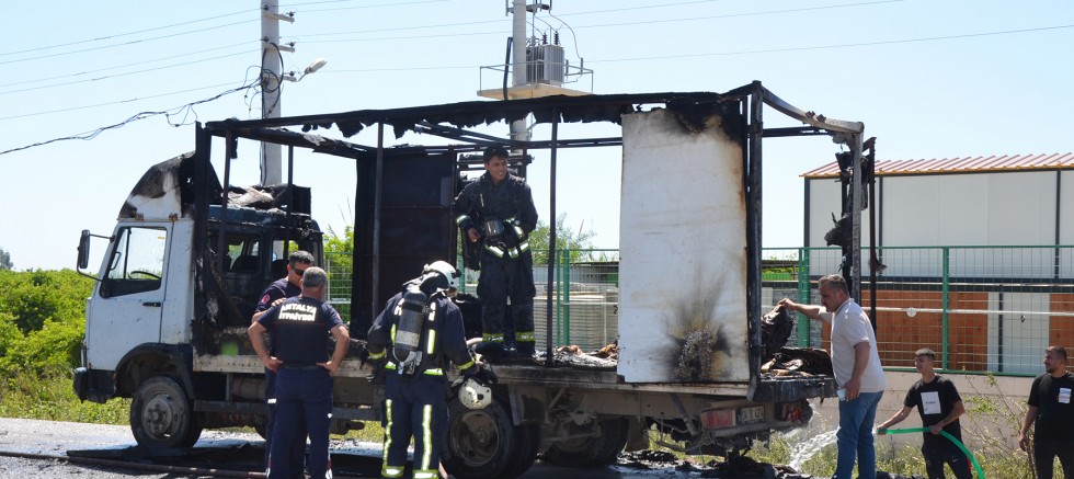 ANTALYA'nın Serik ilçesinde seyir halindeki kamyonette yangın çıktı. İlk müdahaleyi yakındaki iş yerinde çalışanların yaptığı alevler itfaiyenin çalışmasıyla söndürüldü. Yangın sonrası kamyonet kullanılamaz hale geldi.