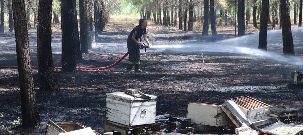 ANTALYA'nın Konyaaltı ilçesinde başlayan orman yangını havadan ve karadan yapılan çalışmalarla söndürüldü. Yangında ormanlık alanda bulunan arı kovanları da zarar gördü.