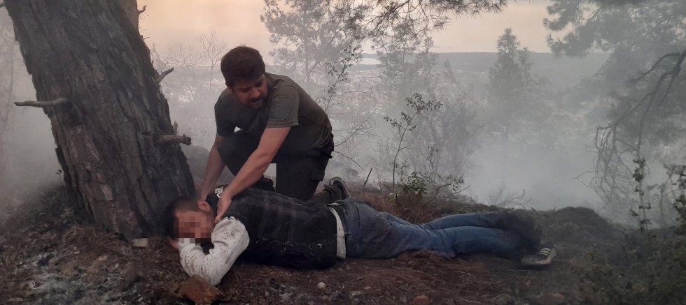 Kemer ilçesi merkezindeki Çalış Tepe mevkisinde saat 07.00 sıralarında orman yangını çıktığı bilgisi üzerine İlçe Orman İşletme Şefliği ve Kemer Arama Kurtarma (KEMKUT) ekipleri bölgeye gitti. Yangına 2 arazöz ve 15 kişiyle müdahaleye giden ekipler, yoldan yaklaşık 600 metre yukarıdaki alana ulaşabildi. İlçe Emniyet Müdürlüğü ve sağlık ekipleri de bölgede hazır bekledi. 1 dönümlük alanda etkili olan yangın, ekipler tarafından etrafı çevrilip kontrol altına alındıktan sonra söndürüldü. İlk müdahale için yangın noktasına çıkan orman muhafaza görevlisi Mustafa Atcı, yanan alanın ortasında yerde yatan kişiyi fark etti. Kendinden geçmiş halde yatan kişiyi bir süre uğraştıktan sonra kaldıran Atcı, yanındakilerle birlikte ormandan yola kadar indirdi. Adının F.K. olduğu belirlenen kişi, sağlık ekibinin müdahalesi sonrası ambulansla Kemer Devlet Hastanesi'ne götürüldü. Çeşitli suçlardan çok sayıda kaydı olduğu belirlenen F.K. ilk ifadesinde, alkol aldıktan sonra ısınmak amacıyla ateş yaktığını söyledi. Hastanedeki kontrollerinde uyuşturucu kullandığı belirlenen F.K., savcılık tarafından Kemer'e ve ormanlara giriş yasağı konulup, 'Uyuşturucu madde kullanımı' kapsamında işlem yapıldıktan sonra bırakıldı. (DHA)